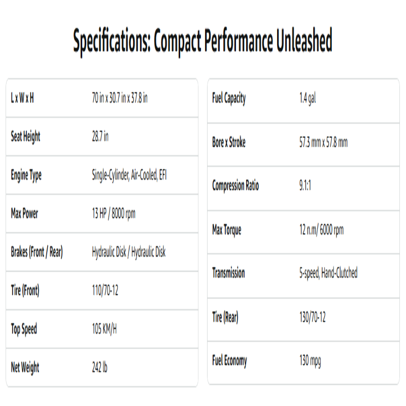 | Engine Type | Single-Cylinder, Air-Cooled, EFI |