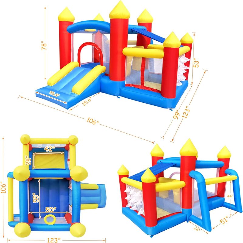 A surprise for children: This inflatable bounce house is perfect for birthday gifts, Christmas gifts, etc. It will give children cheer while promoting them to grow a healthy physique.
