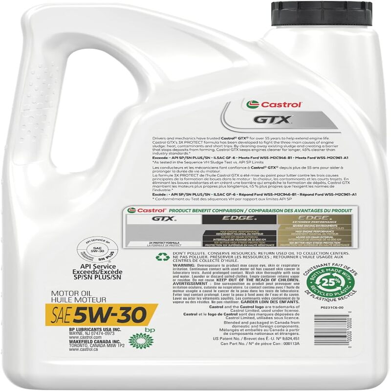 Castrol GTX 5W-30 Ultraclean Motor Oil is a synthetic blend motor oil that provides engine protection against sludge buildup and deposits in your car. This formula helps extend auto engine life by cleaning away existing sludge while preventing new formation.