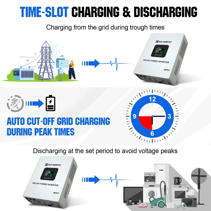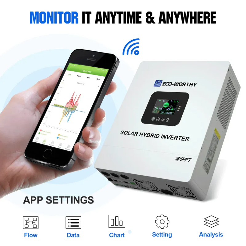 - Dual 5000W High-Performance Off-grid Inverters: Supports solar, grid, and generator charging sources, delivering pure sine wave output and advanced battery management.
