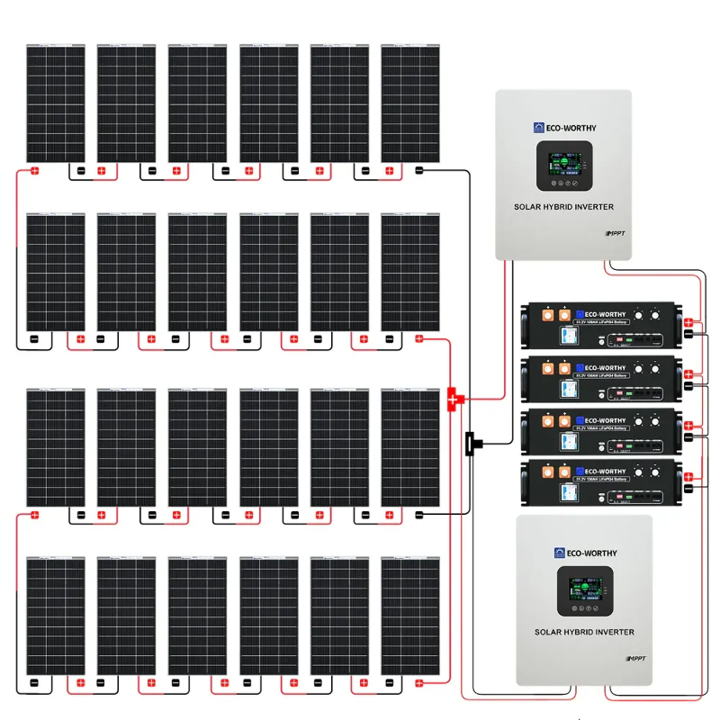 - All-in-One Off-Grid Solar System Kit: Comprehensive kit including solar panels, inverters, battery bank, and a 6-layer battery rack. Ideal for homes, cabins, and remote off-grid locations, enabling easy energy independence and a reliable power supply.