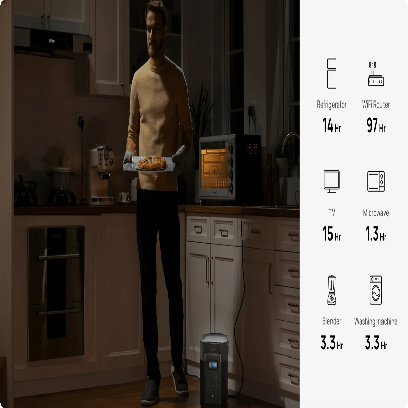 Powers Pretty Much Anything - With X-Boost technology, DELTA Max can power almost all of your appliances and devices up to 3400W. Ideal for power outages, camping or RV trips.
