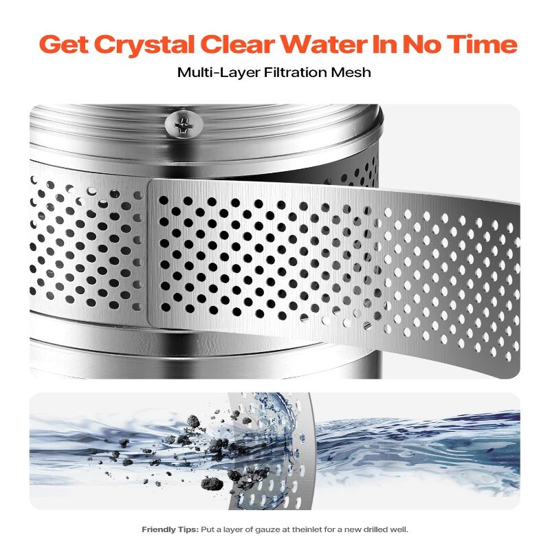 Ideal for Any Water Source: Our deep well pump is built to handle a variety of water sources, making it ideal for agricultural irrigation, livestock watering, residential water supply, river extraction, and pond maintenance. Warning: Put a layer of gauze at the inlet for a new drilled well. Ensure your well casing diameter exceeds the pump diameter by at least 0.39 in/10 mm for optimal fit. Do not use it without water or at low water levels to avoid burning.