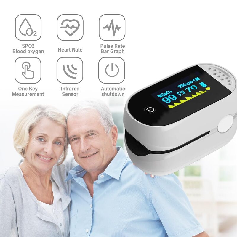 Application environment—commonly used for patients with respiratory hypoxia or patients who need to monitor blood oxygen content and heart rate, also suitable for pilots, athletes, sports enthusiasts, or in certain hypoxic plateau environments. Anyone interested in measuring oxygen and heart rate. Great for spot checks before and after exercise.